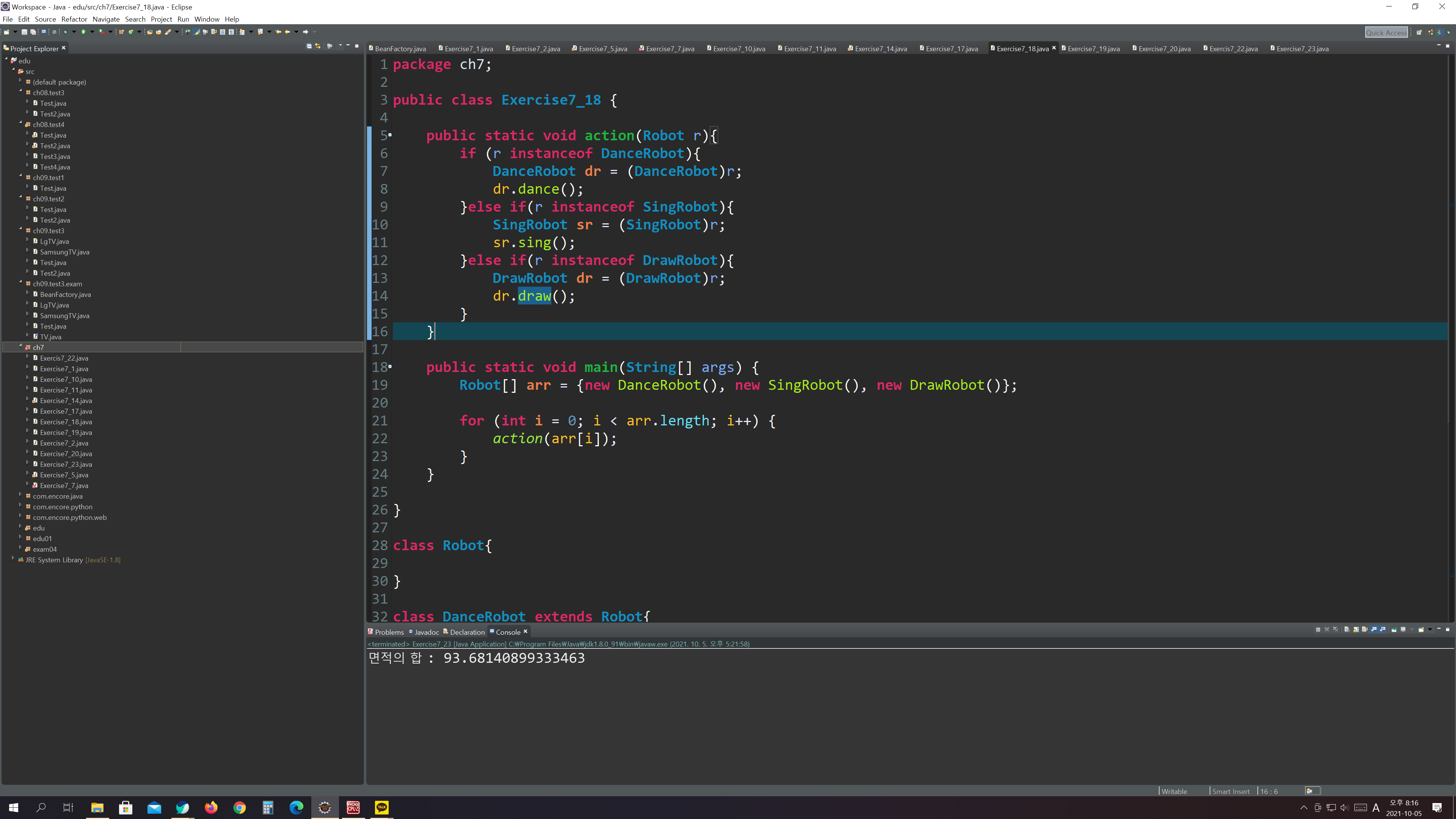 오늘은 상속, 다형성, 추상클래스, 인터페이스 등에 대해 배웠다