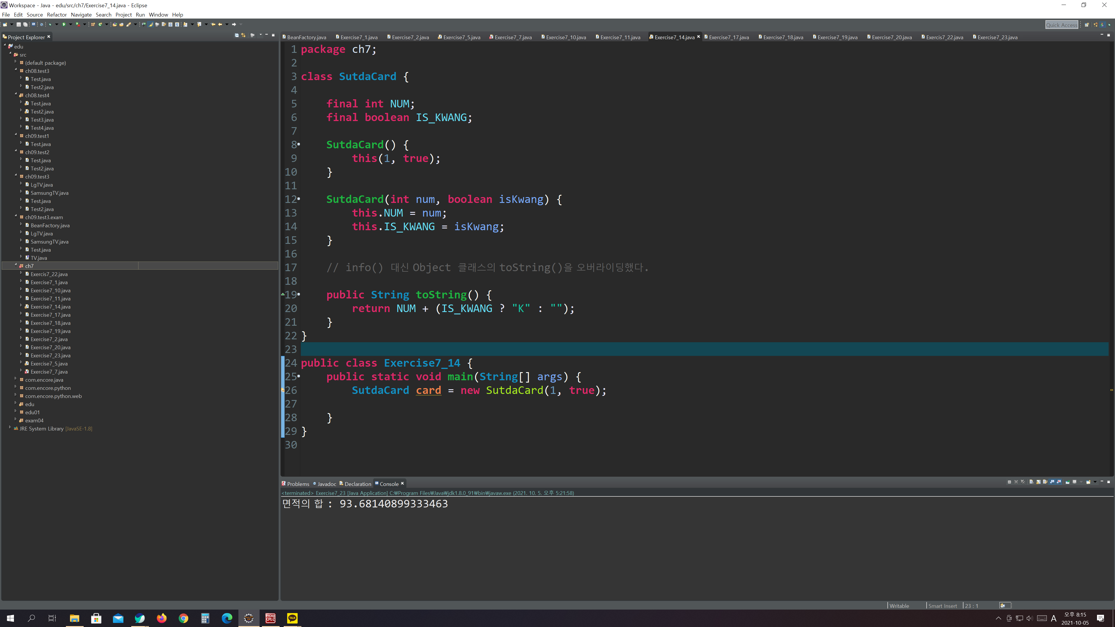 그 동안 배운 내용들을 토대로 예제를 푸는 시간을 가졌다