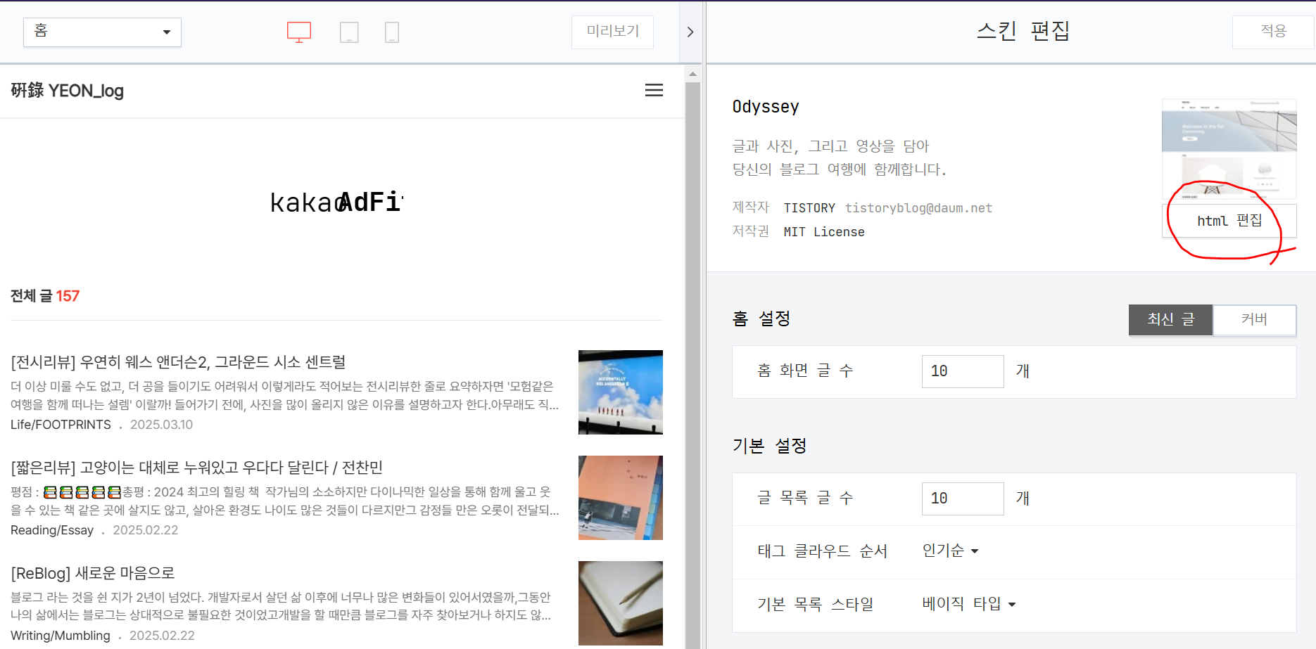 승인을 위해서는 블로그 헤더에 코드를 삽입해야 하는데,