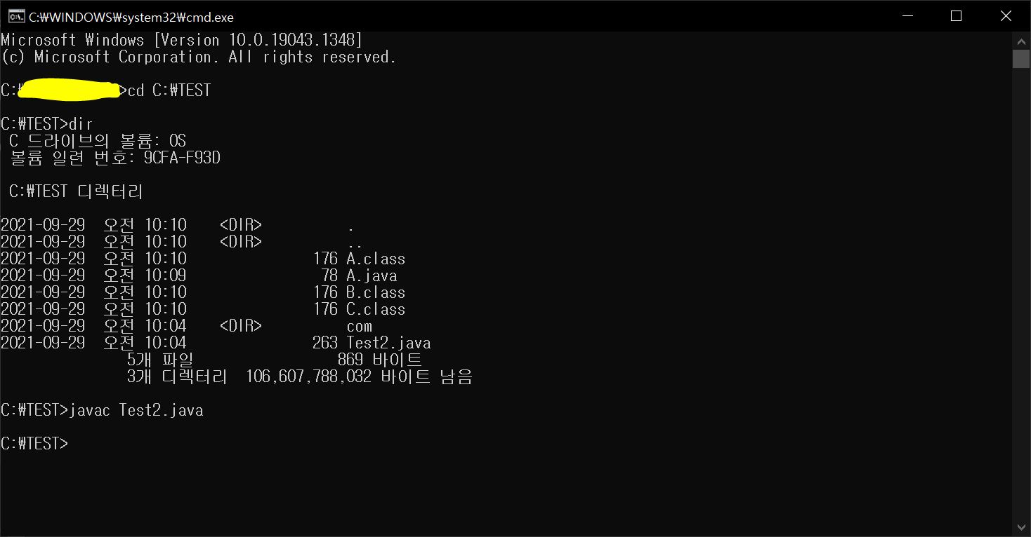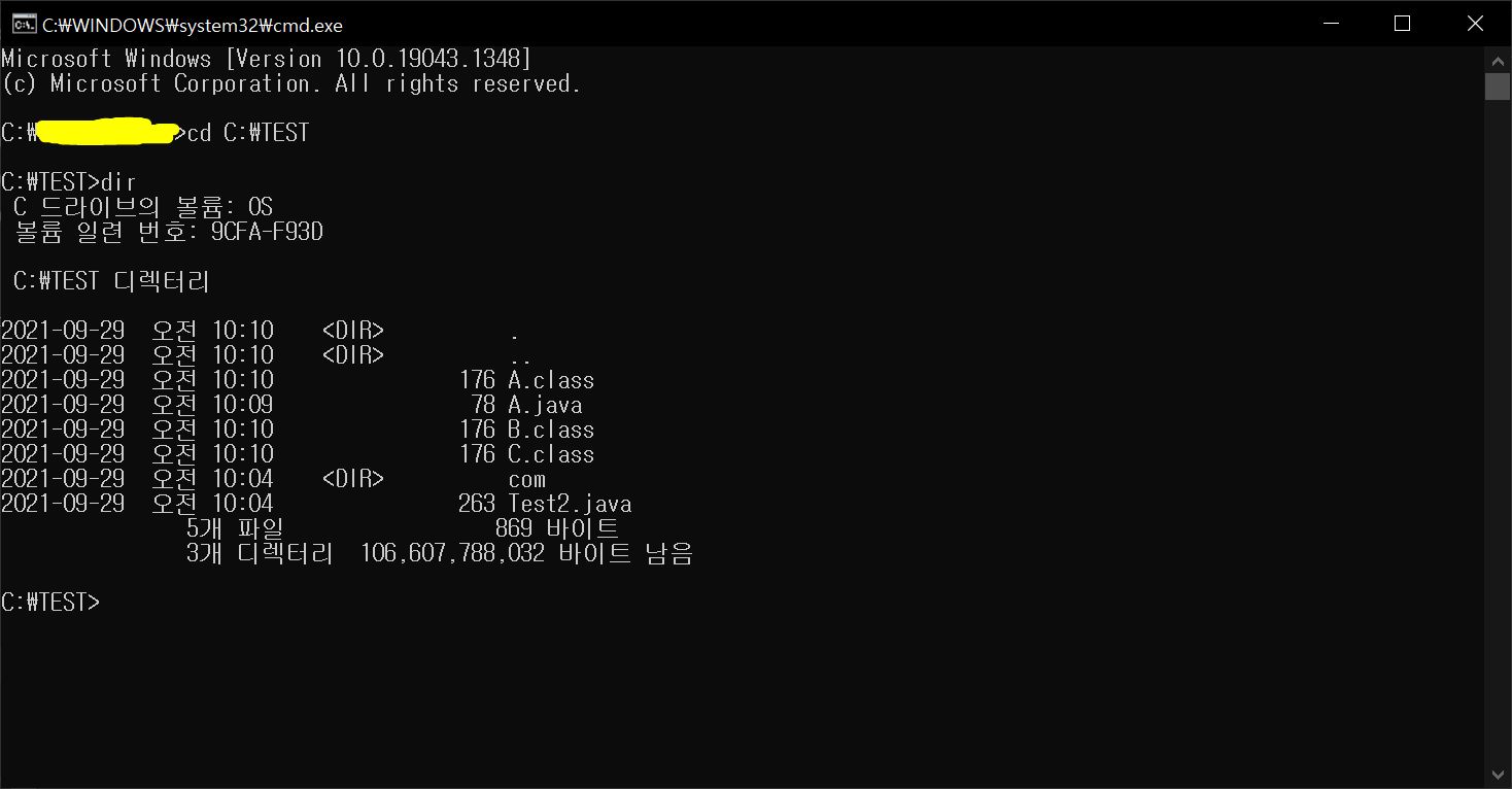 cmd 실행 후 cd 명령어를 통해 컴파일할 *.java 파일이 있는 경로로 이동한다