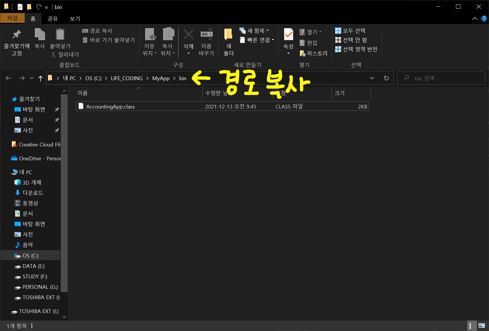 cd 명령어를 통해 class파일이 있는 경로로 이동한다