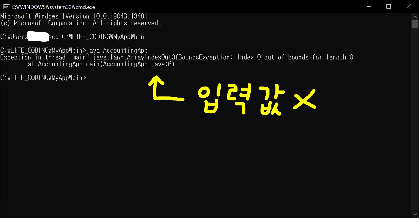 입력값이 없는 경우 오류가 발생하는 것을 확인 할 수 있다