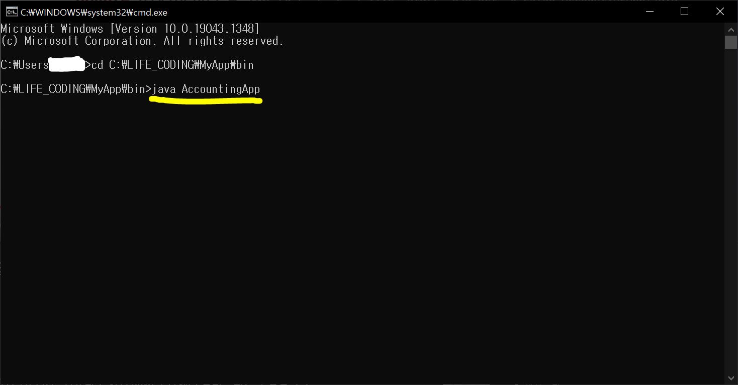 cd 명령어를 통해 class파일이 있는 경로로 이동한다