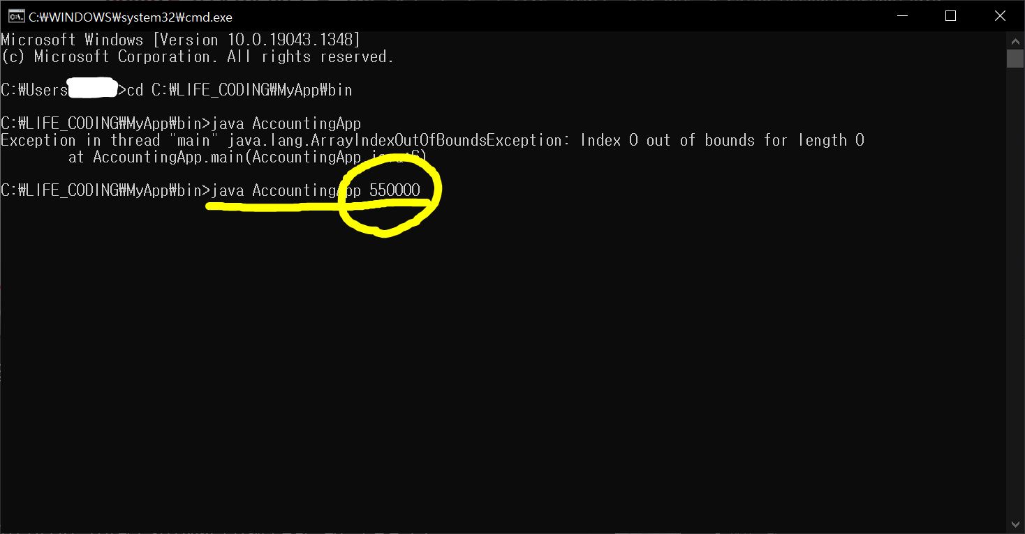 java + 파일명 뒤에 띄어쓰기 후 입력값을 넣어준다