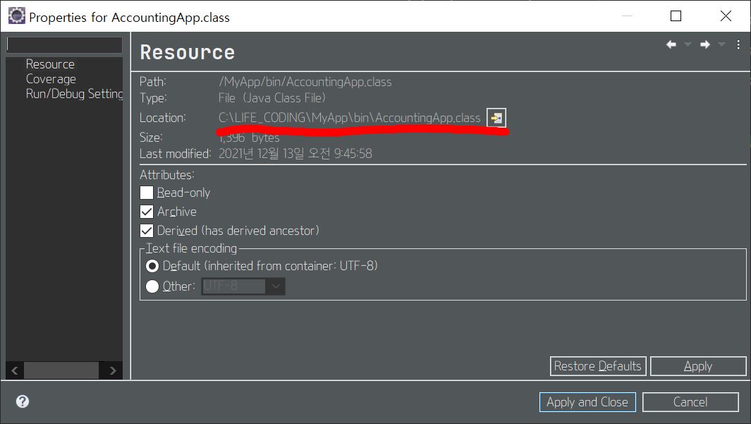 class 파일의 [Properties] 탭을 통해 경로를 확인한다