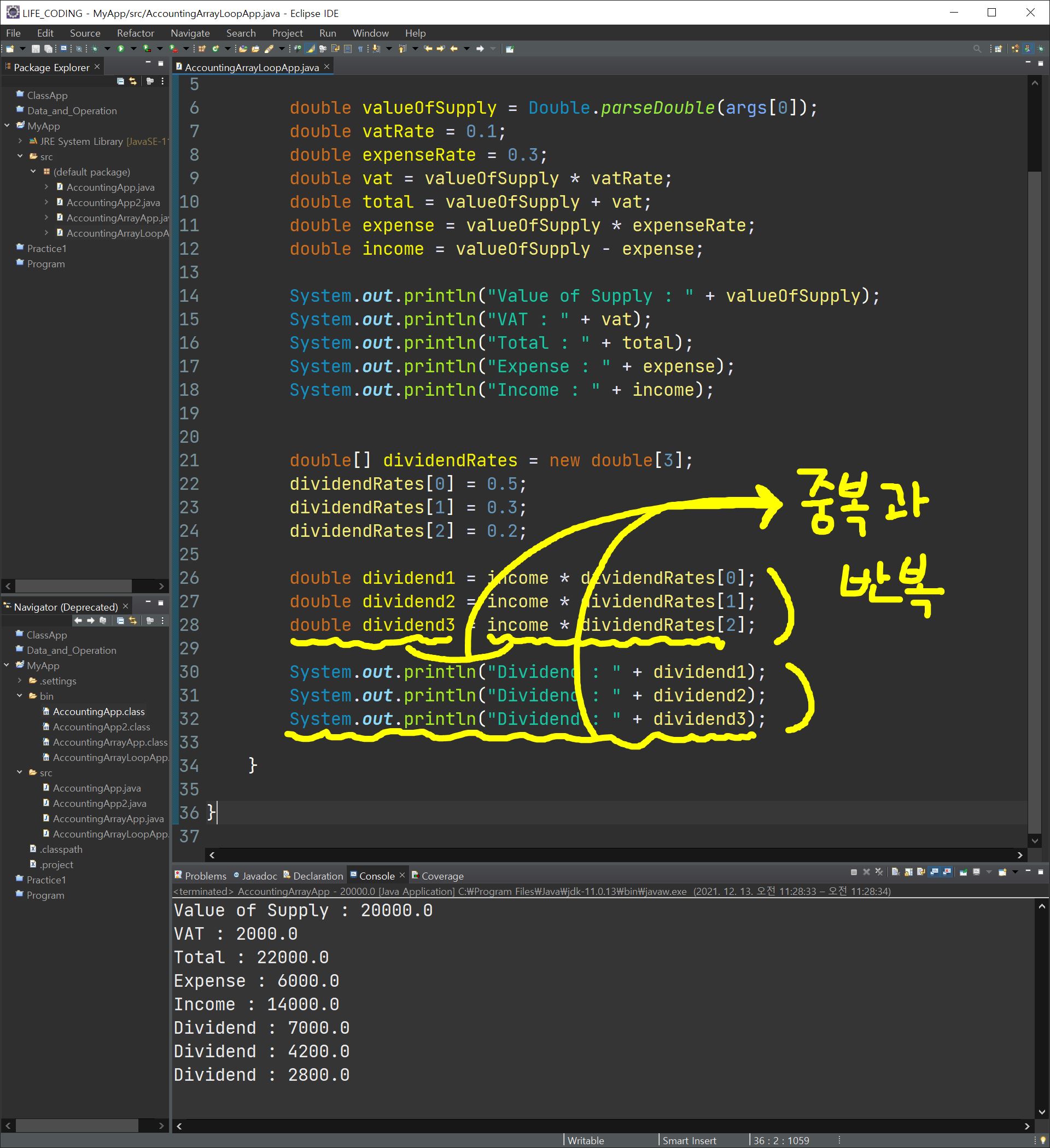 결국 각 사람의 배당 금액을 나타낼때 같은 코드가 반복되는 부분이 있었다