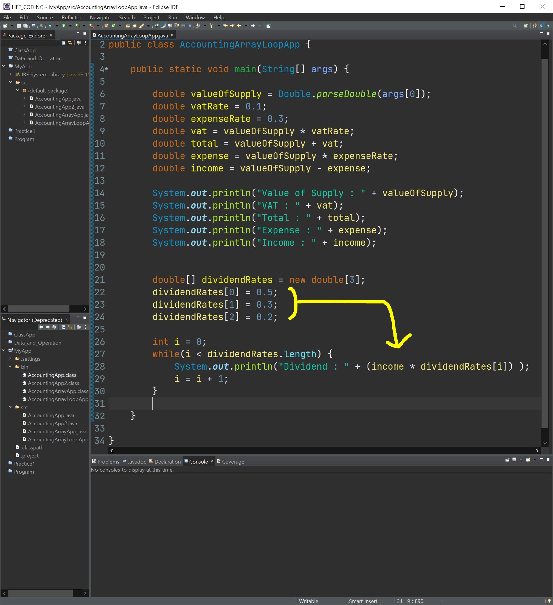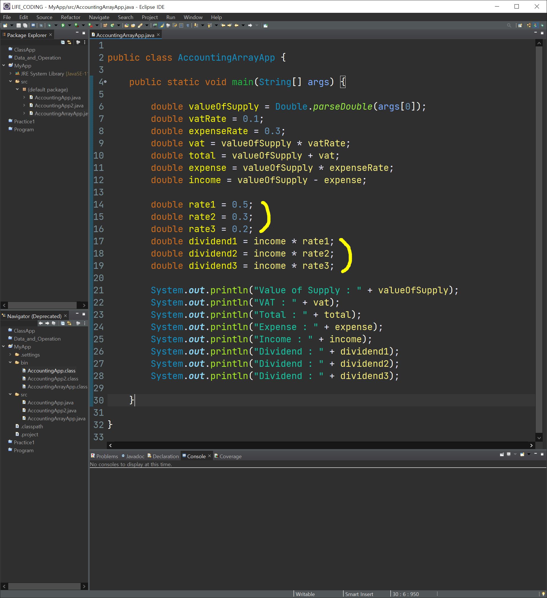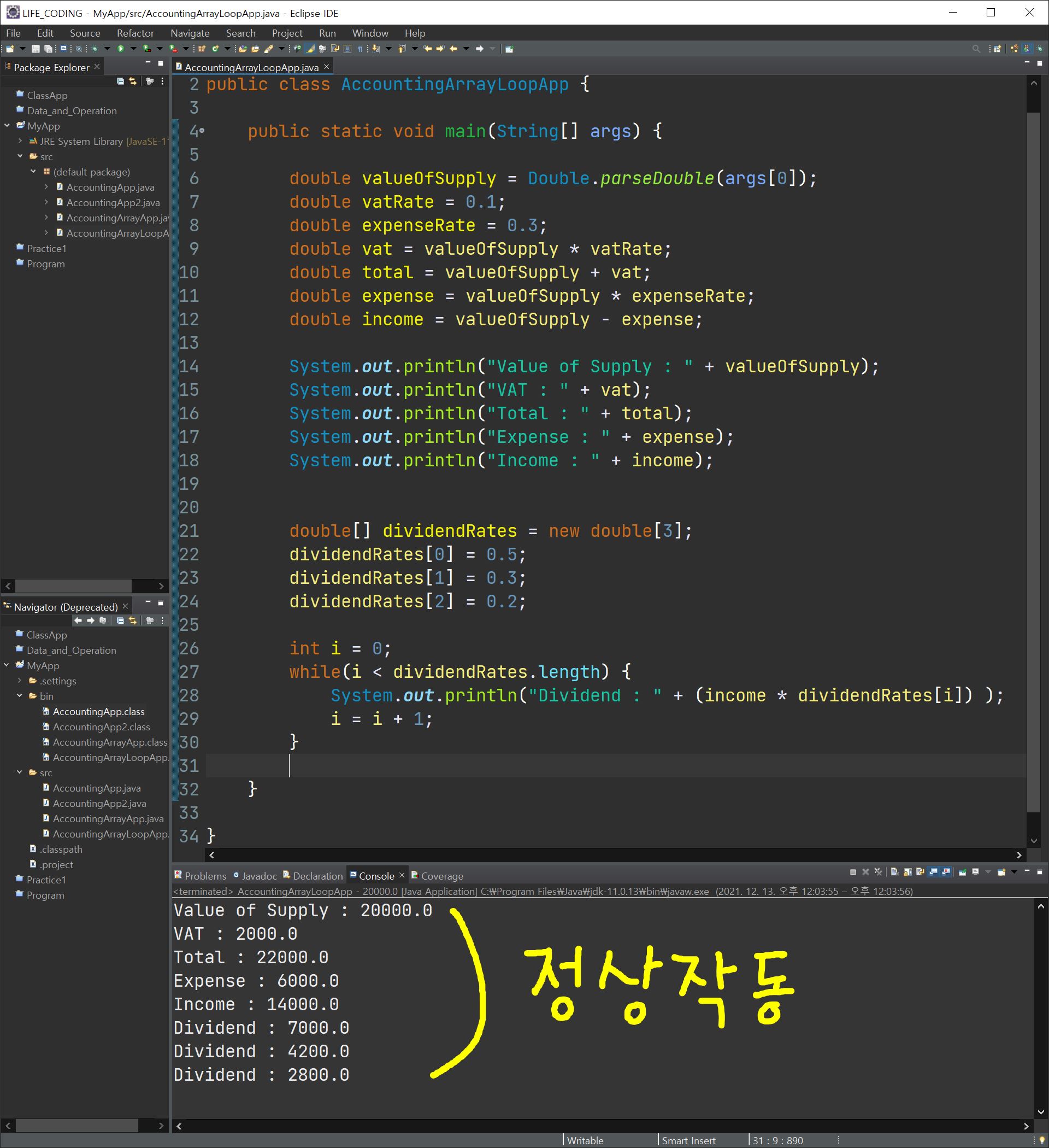 바로 이전에 만들었던 프로그램에서 배당을 세 사람에게 각각 5:3:2라고 했을 때