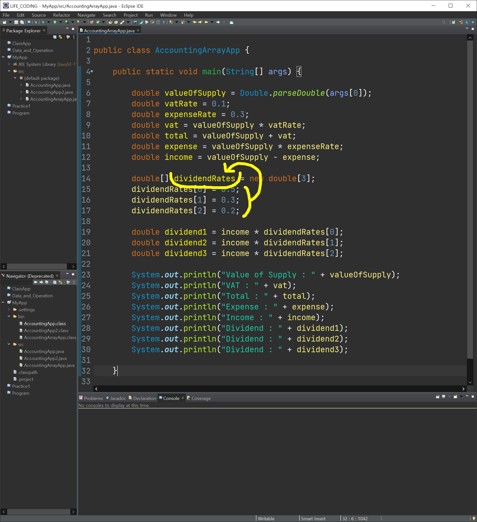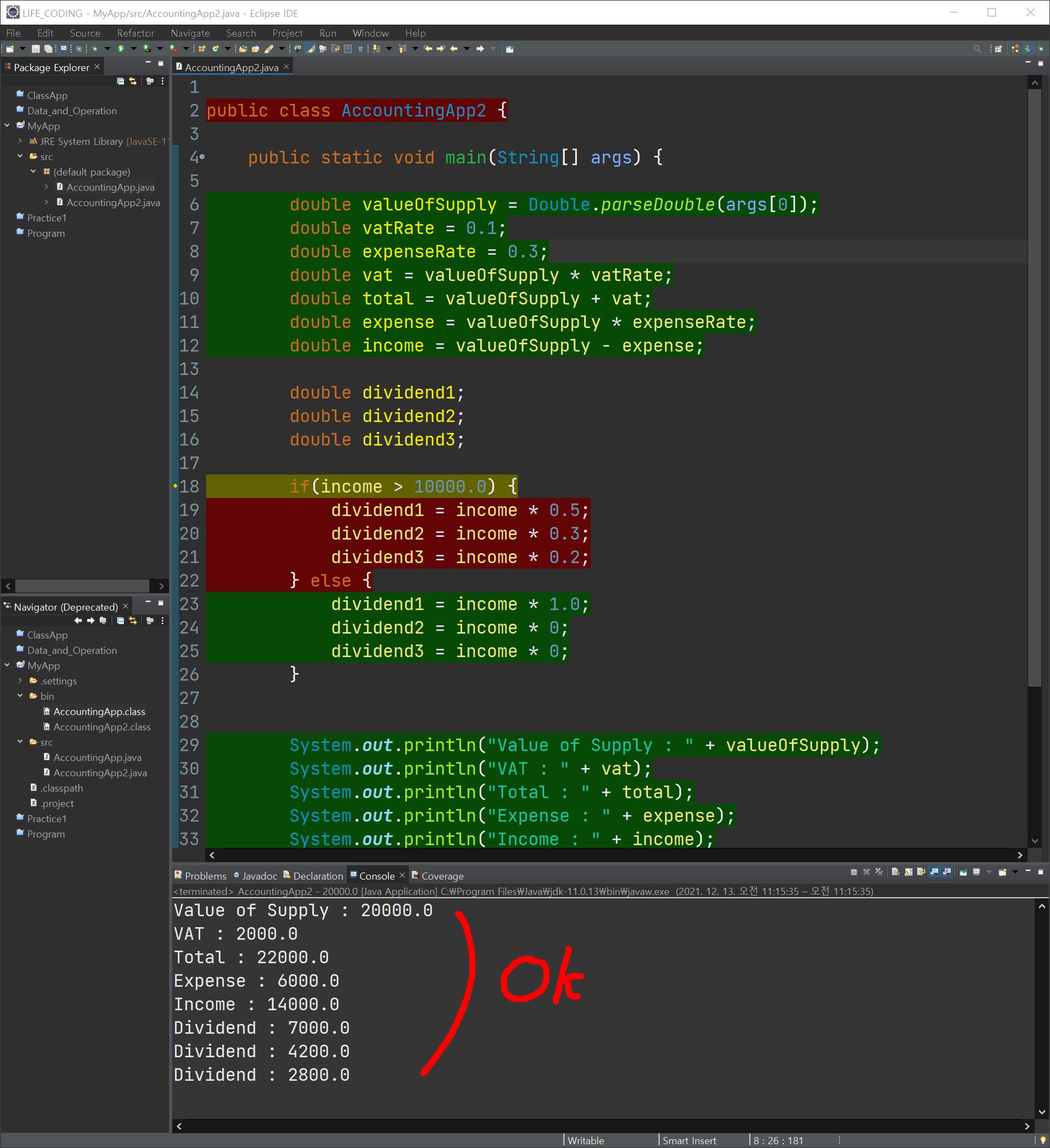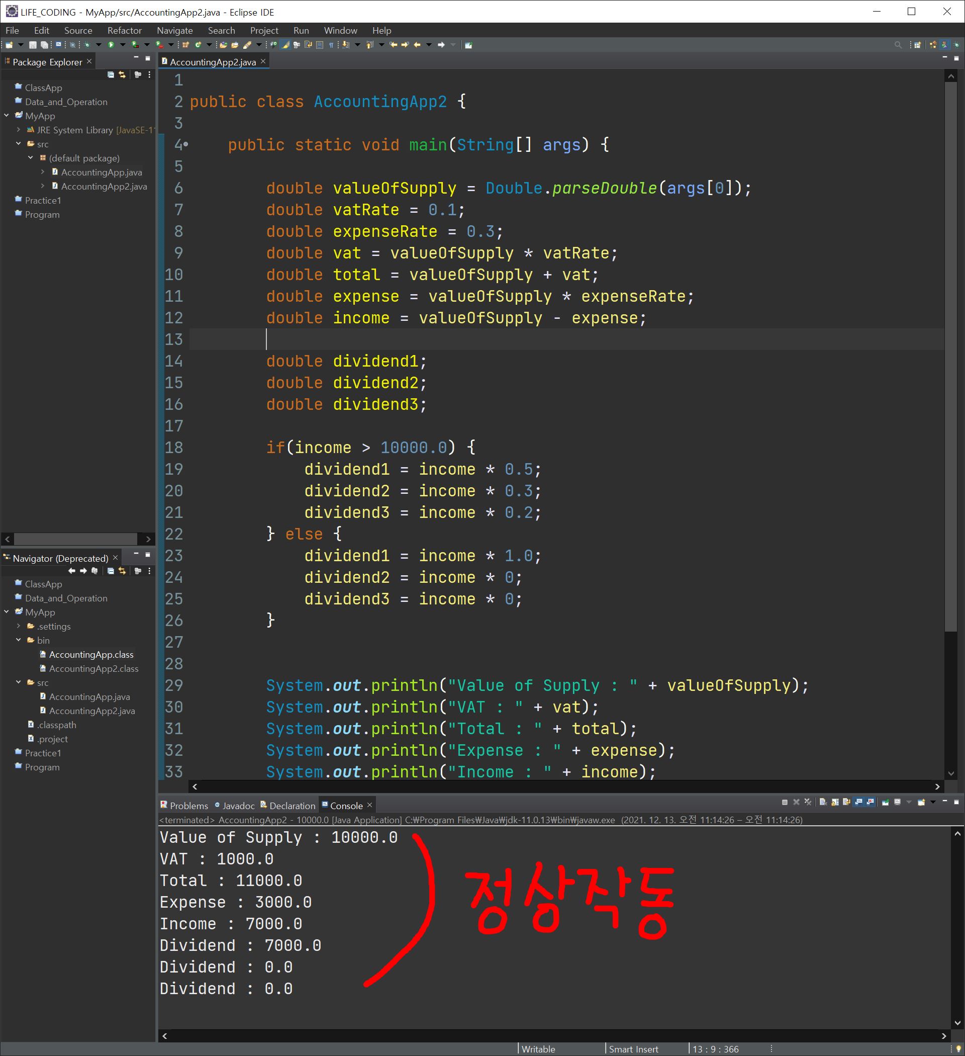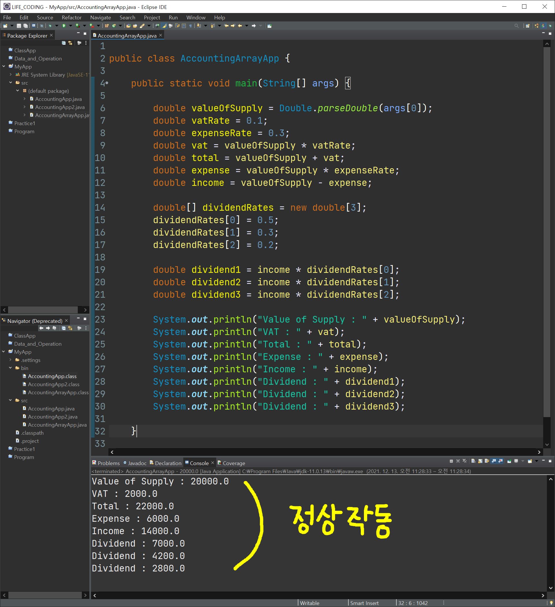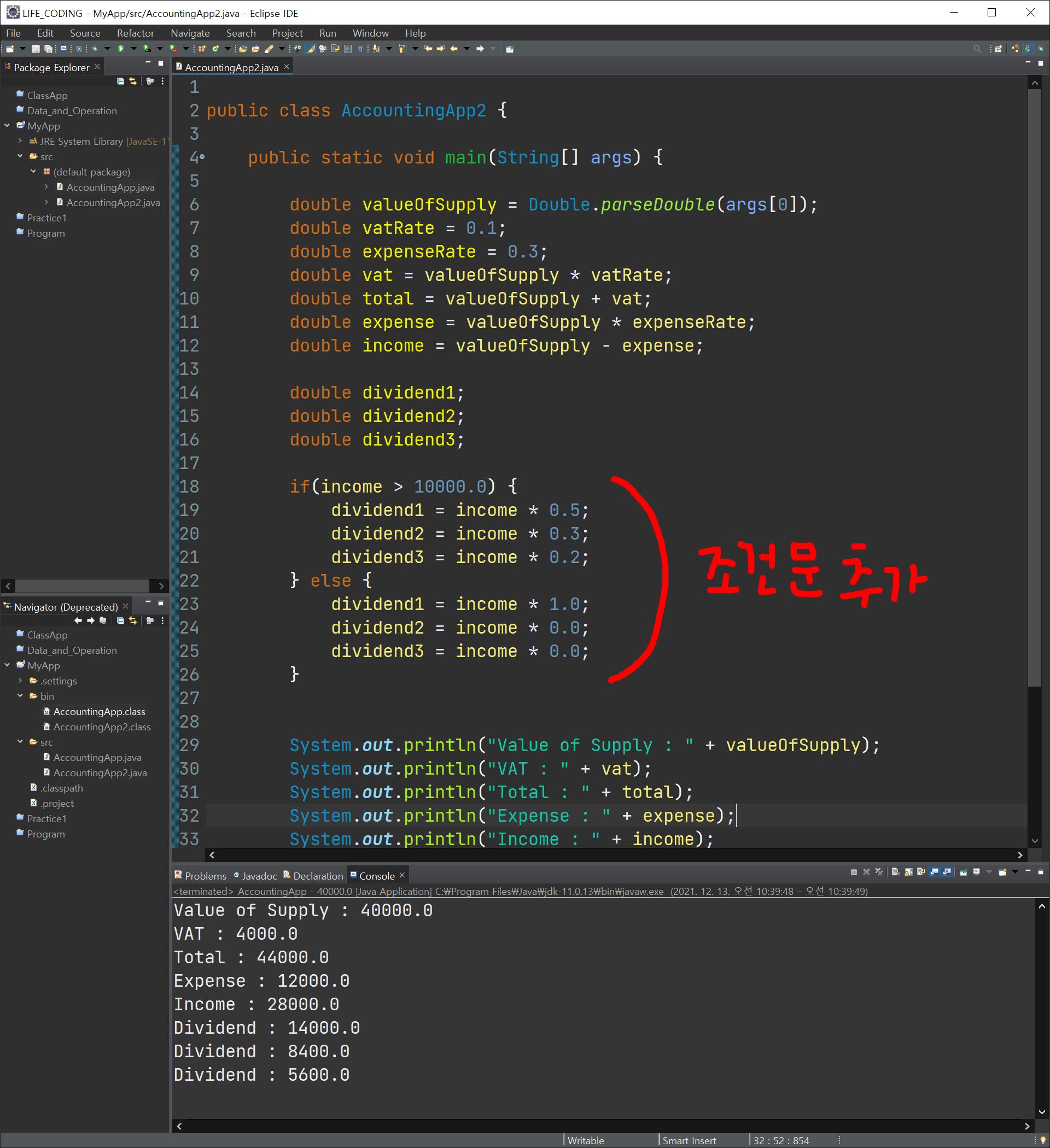 바로 이전에 만들었던 프로그램에서 배당을 세 사람에게 각각 5:3:2라고 했을 때