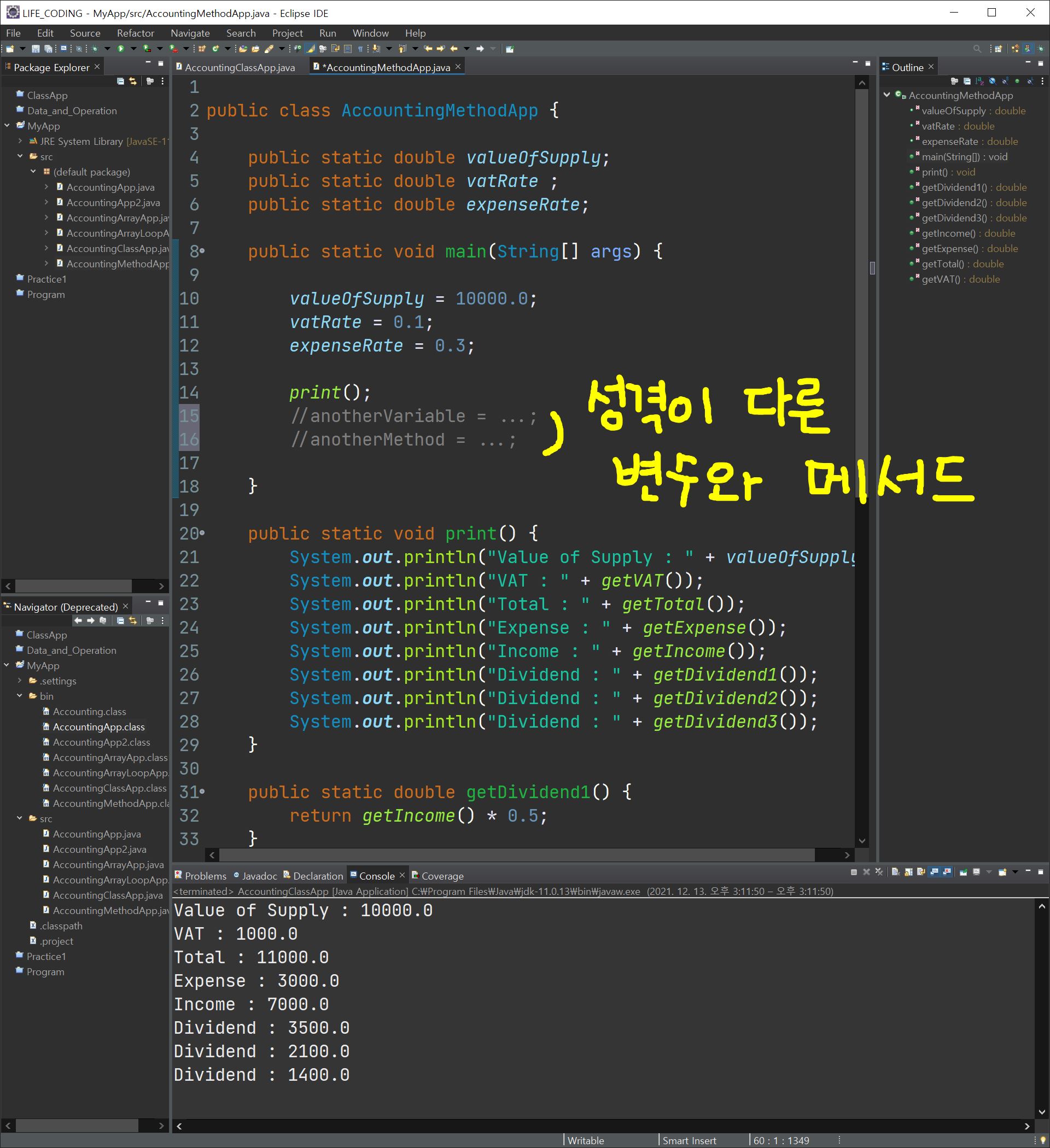 이전에 만들었던 어플리케이션에 메서드를 대입하게 되면