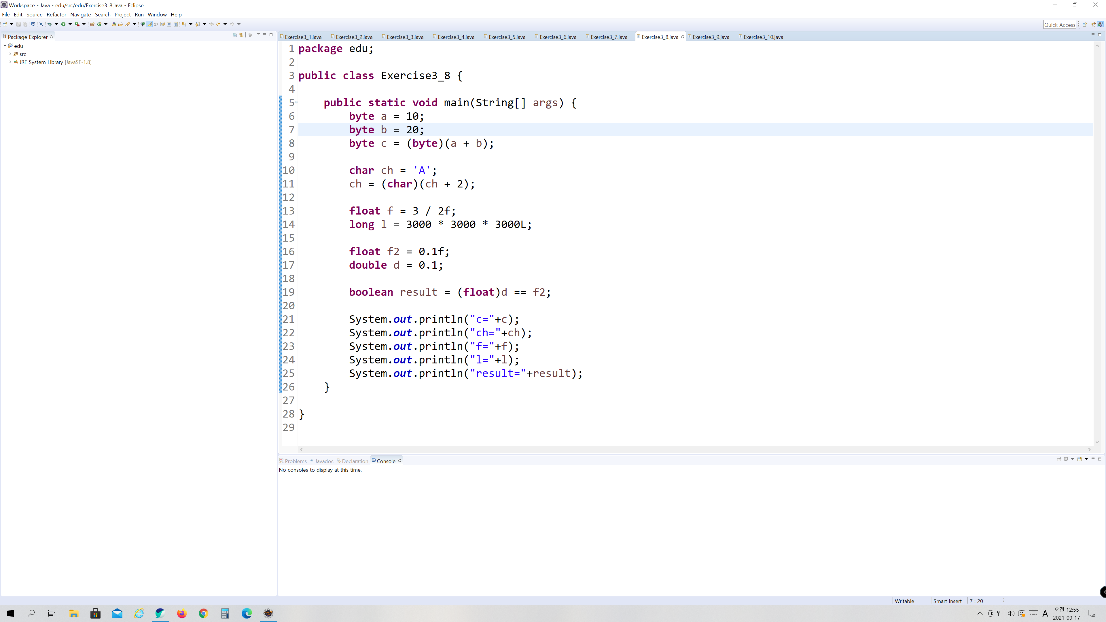 변수 선언, 각종 자료형과 형 변환, 상수와 리터럴, 자료 연산자까지