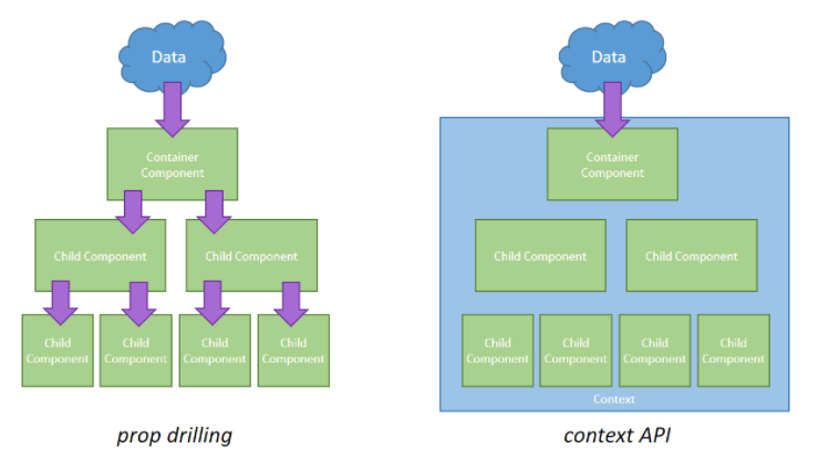 중간과정에서 의미없는 props 전달만 하는 일이 생길 수 있다는 문제가 있었고,